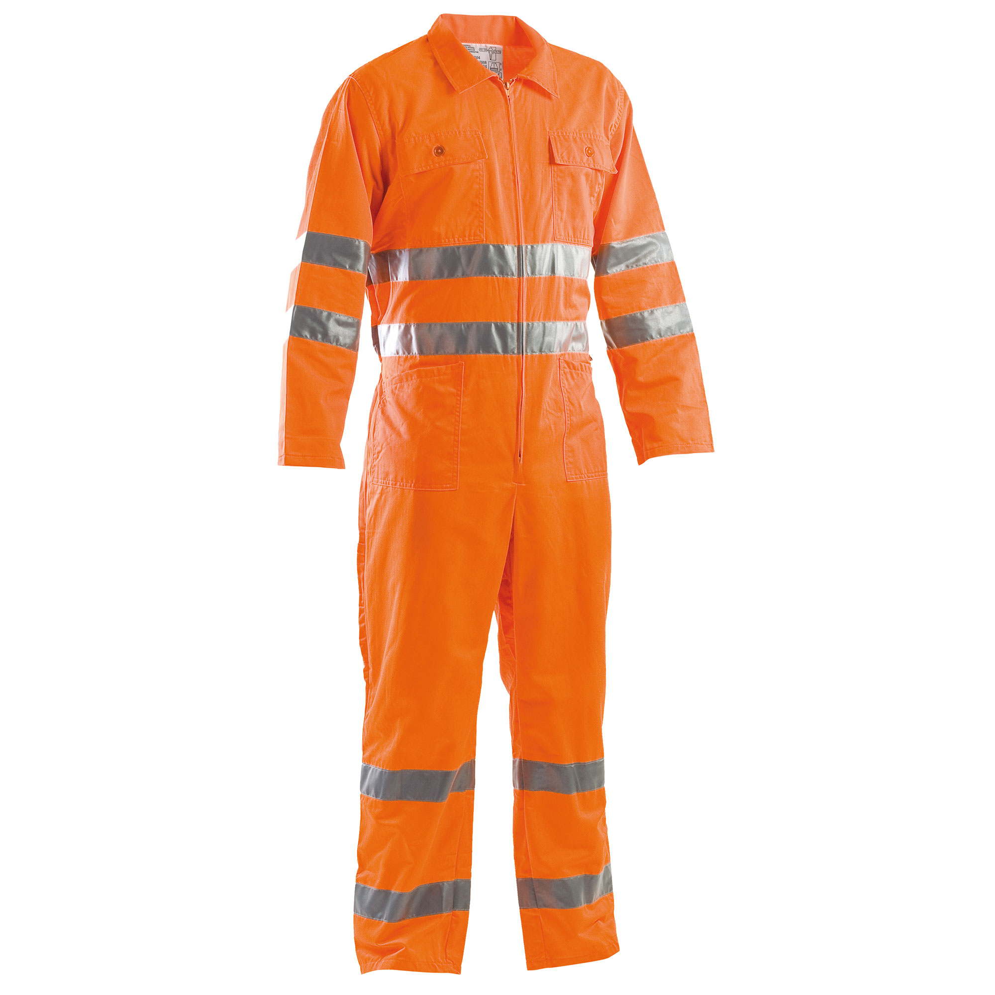Work suit with covered zip, back elastic at the waist, two flap pockets with button on the chest, two front pockets, back pocket with button, ruler pocket.