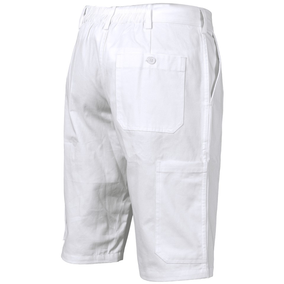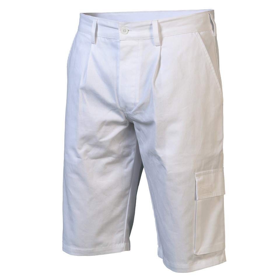 Bermuda da lavoro modello "Kiparis" con elastico in vita, bottoni coperti, tre tasche, portametro su gamba destra e tascone con pattina velcro su gamba sinistra.