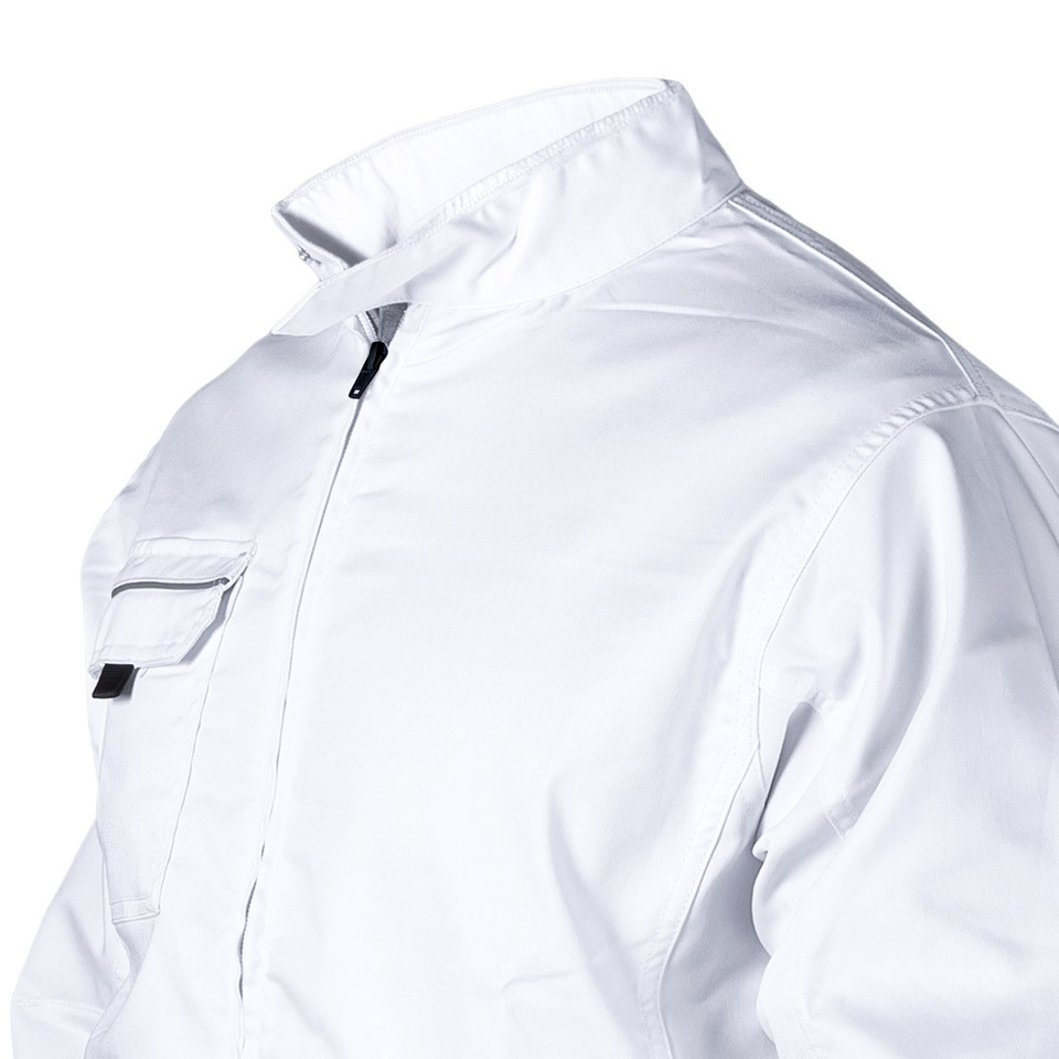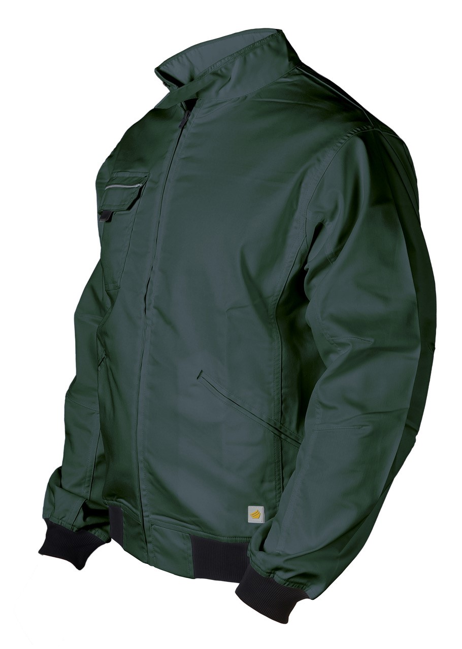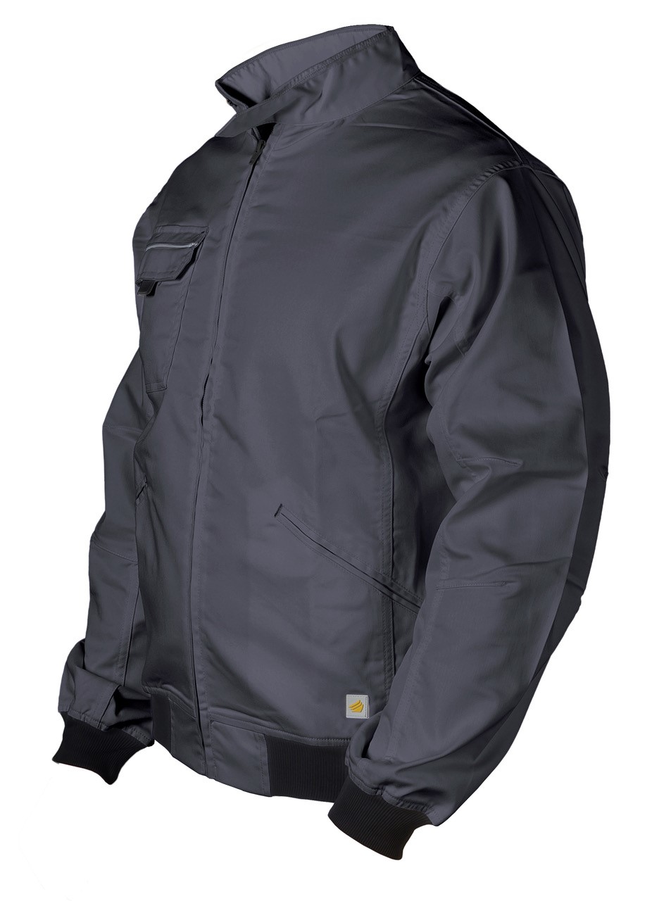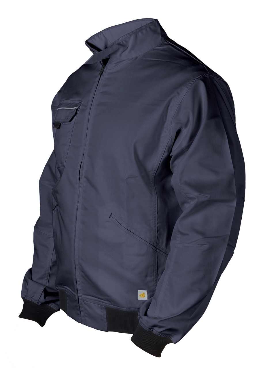 Giubbino Bomber “Urban” in poliestere/cotone stretch per abbinare confort e resistenza ad una vestibilità casual. Vita in maglina elasticizzata, zip frontale, collo alla coreana con bottone a pressione coperto. Due tasche davanti a filetto chiuse con velcro. Il taschino lato cuore, con pattina chiusa da velcro, contiene gancio porta-badge. Triple cuciture e travettature di rinforzo nei punti di maggior tensione. Profili rinfrangenti su taschino davanti e sulle spalle, maniche preformate.