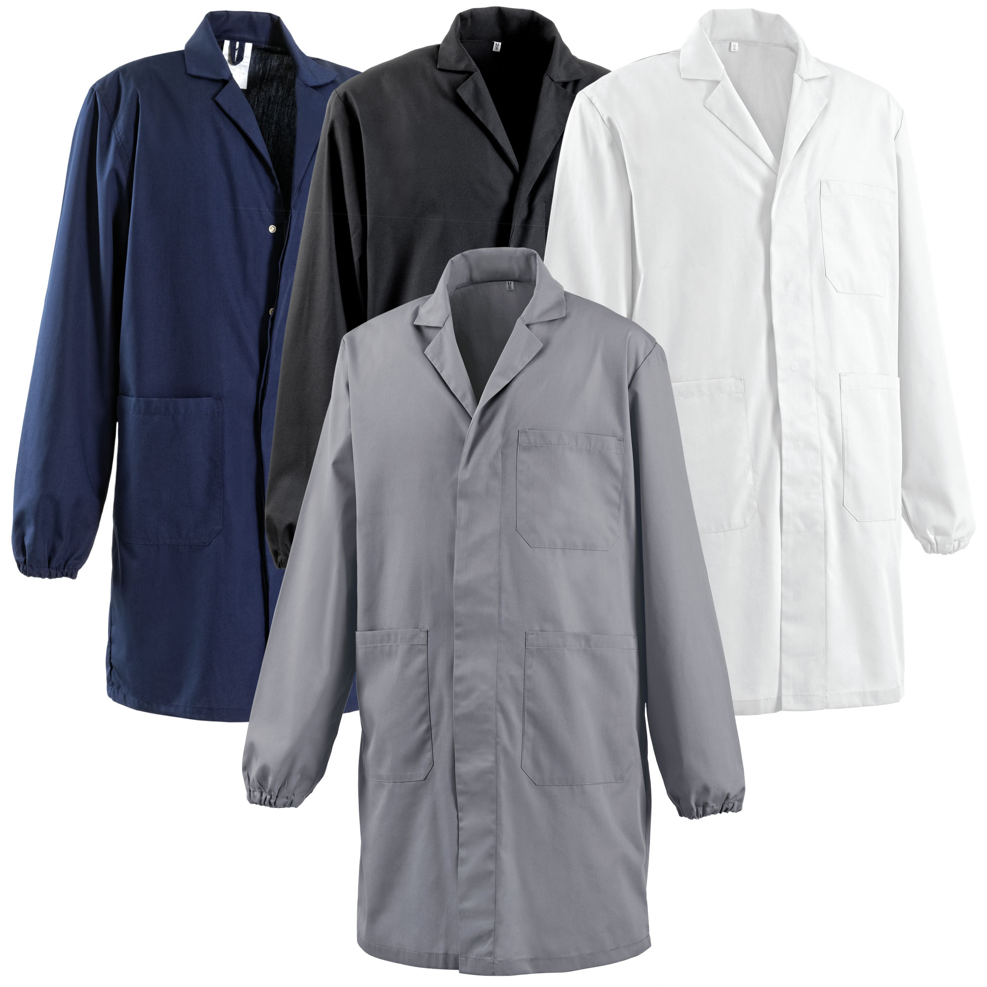 Camice lavoro con tre tasche, copribottone ed elastico ai polsi. FINE SERIE