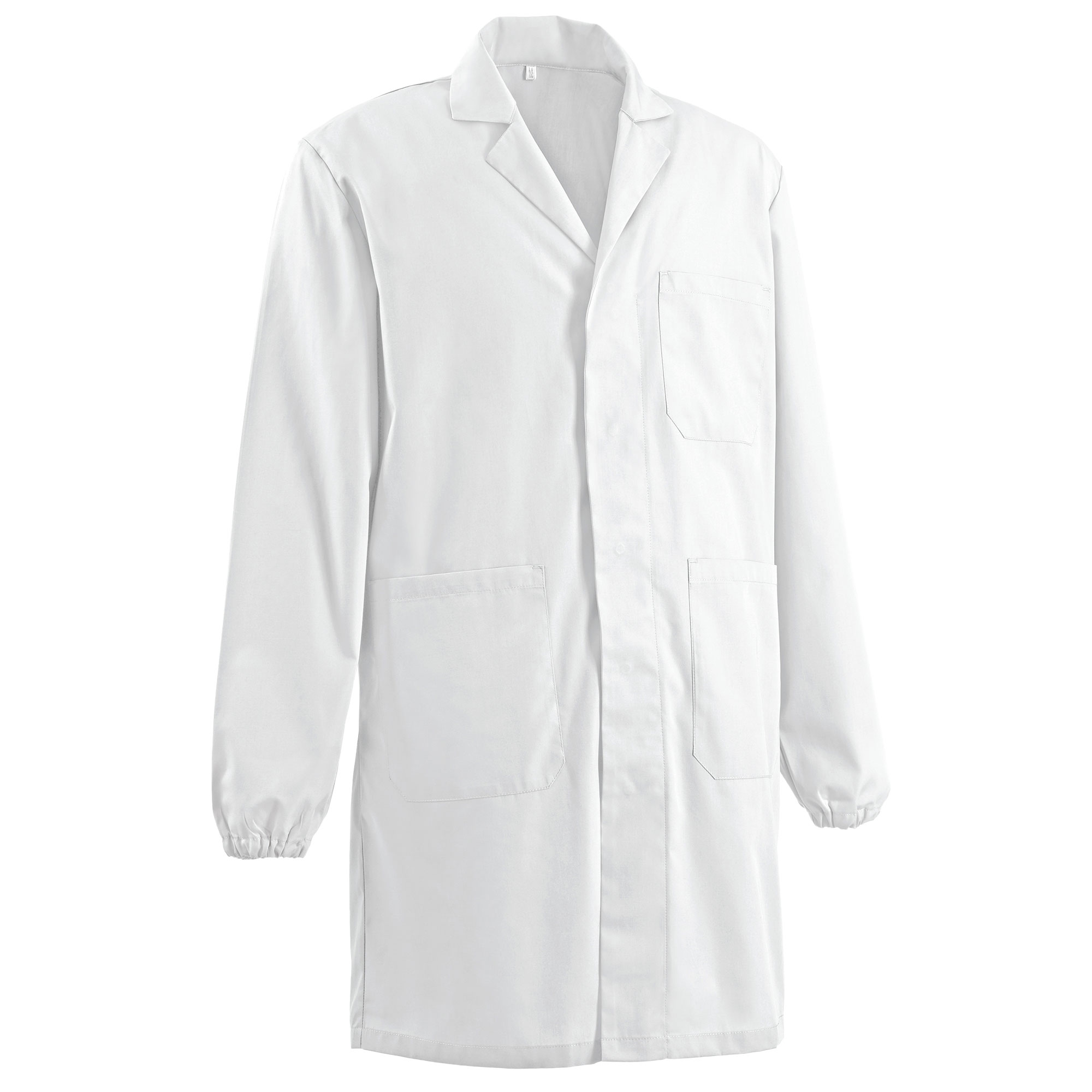 Camice da lavoro con bottoni a pressione coperti, tre tasche anteriori, elastico ai polsi. Colore BLU tg. S-3XL / Colori GRIGIO e NERO tg. XS-3XL / Colore Bianco tg.S-XXL