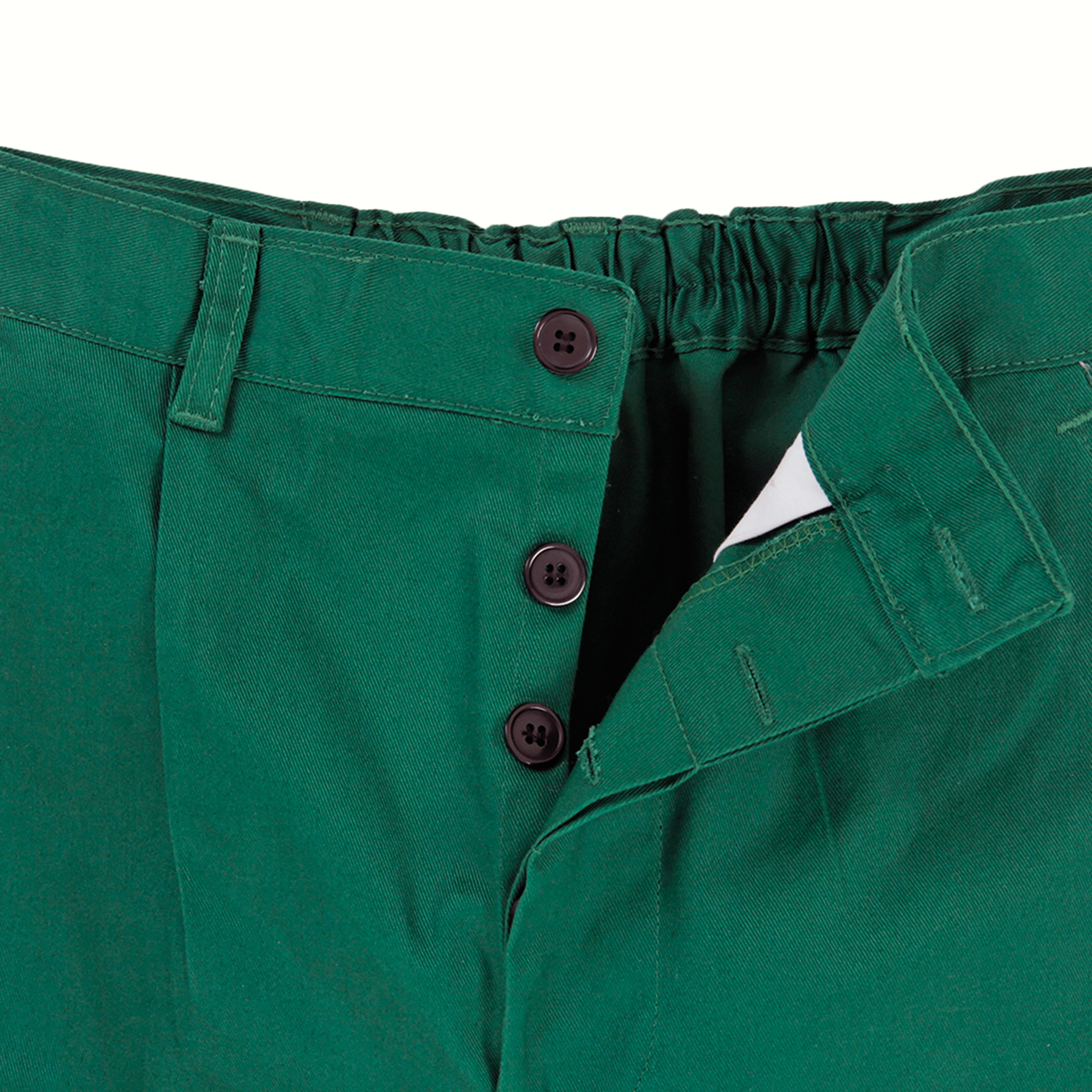 Pantalone lavoro modello "Oro" con elastico in vita, bottoni coperti, tre tasche e portametro. CORRISPONDENZA TAGLIE 44=S 46-48=M 50-52=L 54-56=XL 58-60=XXL 62-64=3XL