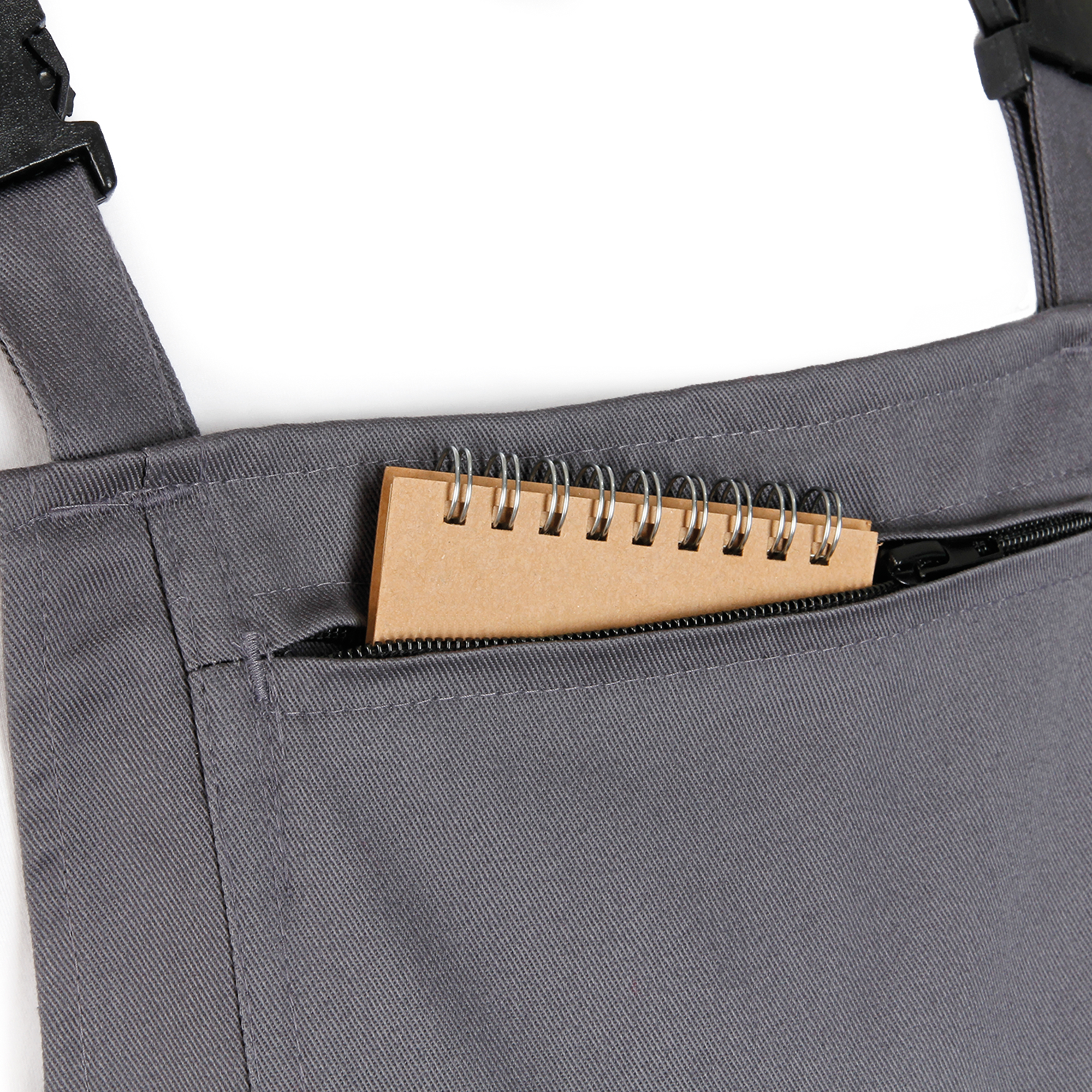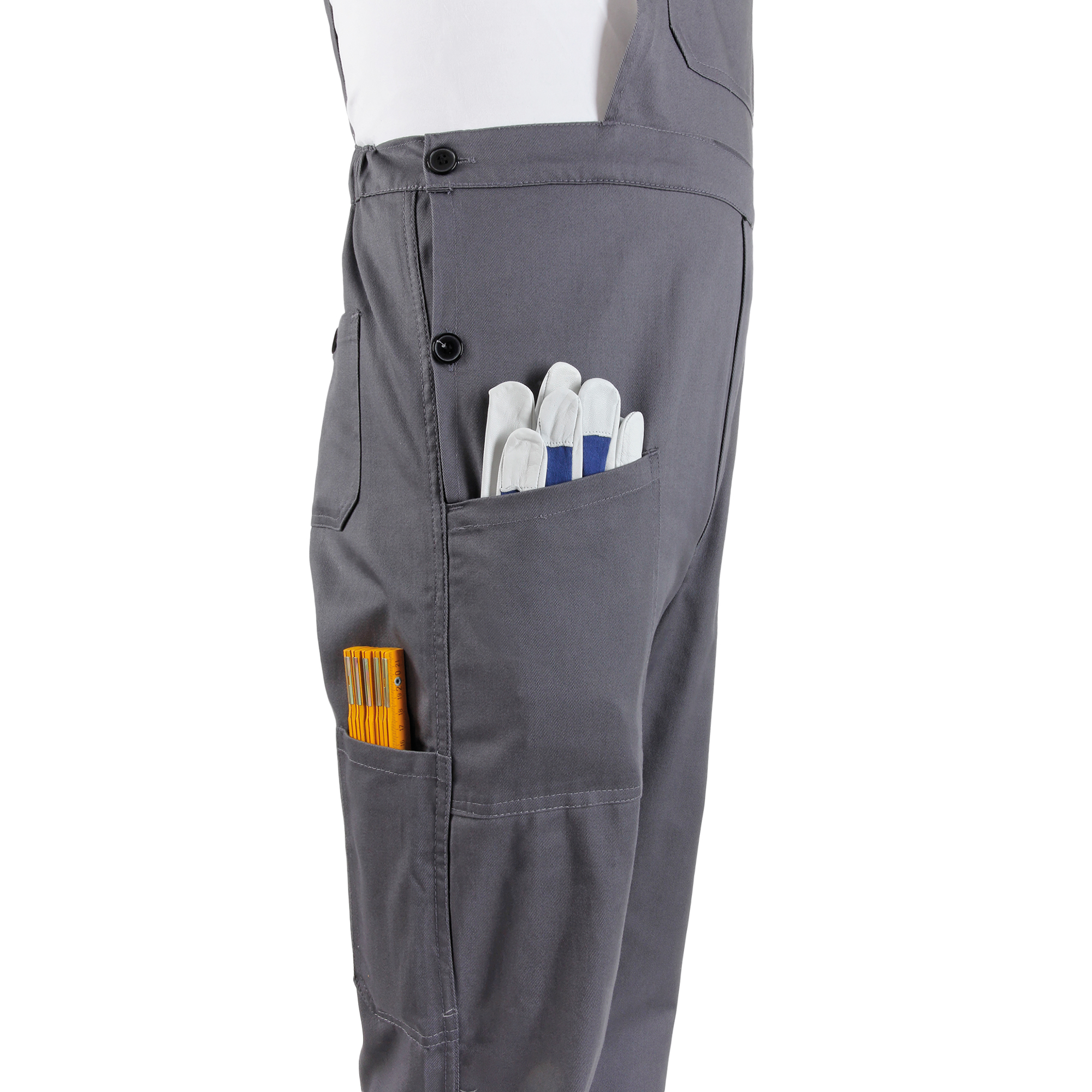 Salopette modello “Oro”, con elastico sul retro e sulle bretelle, quattro tasche, portametro e ganci in plastica. CORRISPONDENZA TAGLIE 44=S 46-48=M 50-52=L 54-56=XL 58-60=XXL 62-64=3XL