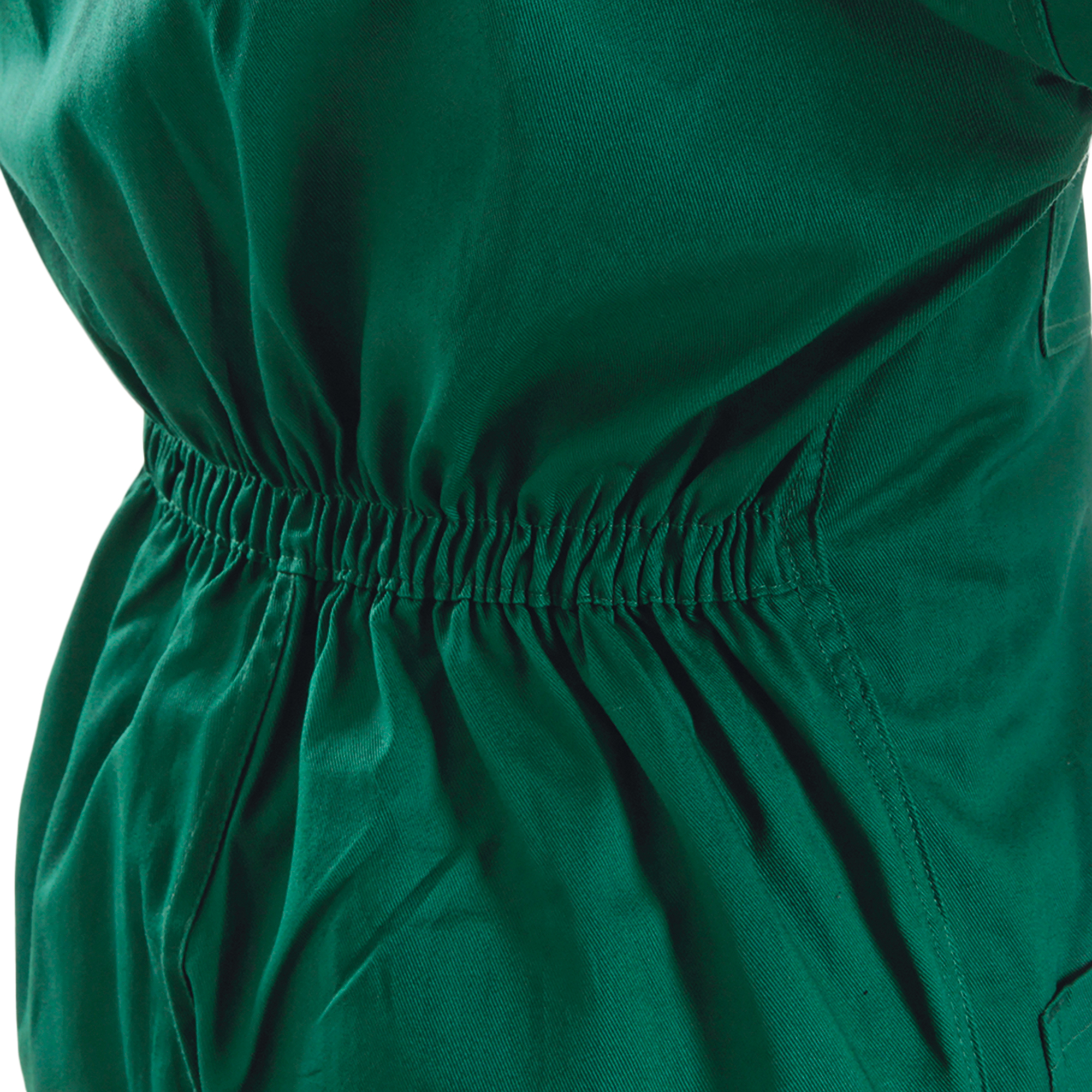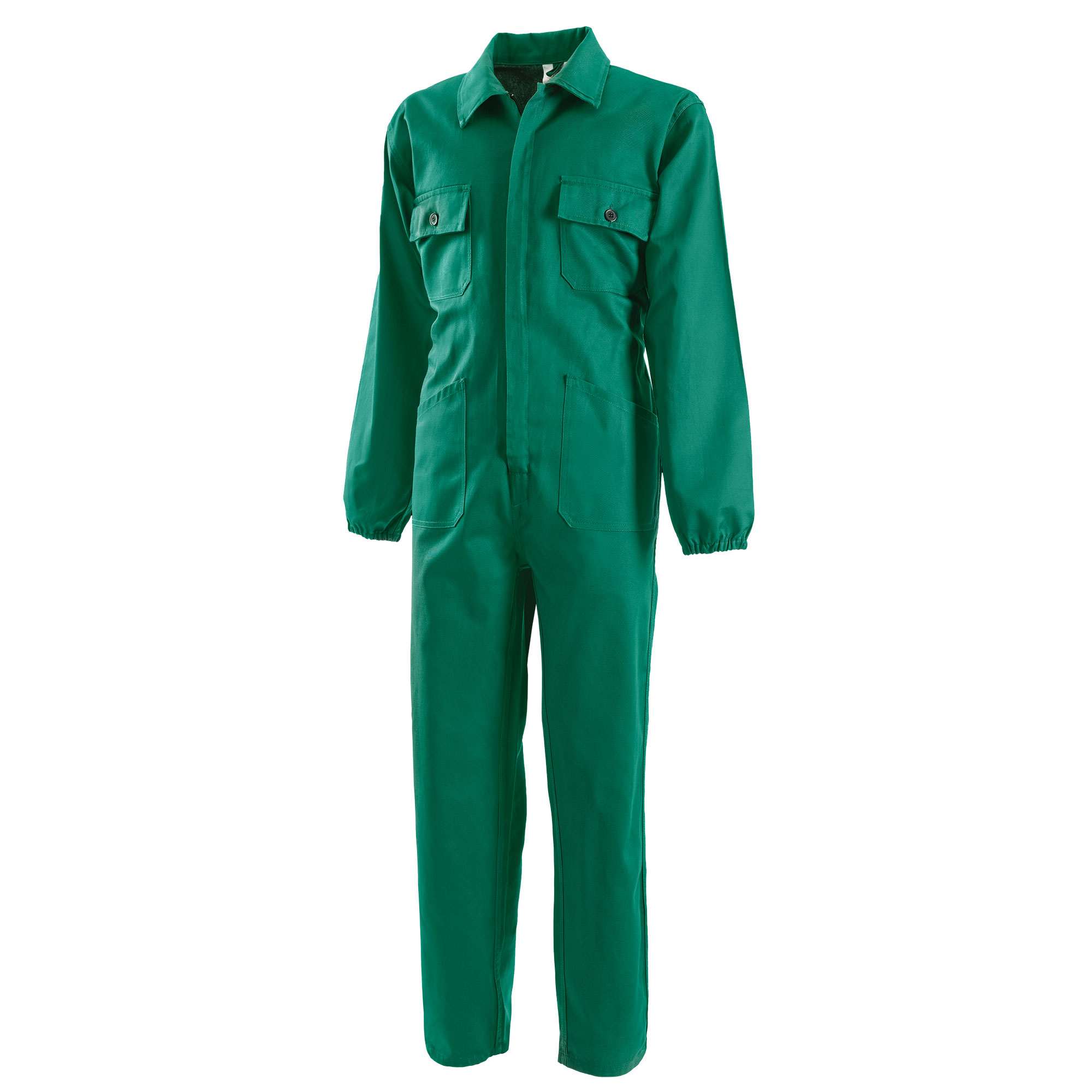 Tuta lavoro modello "Oro" con cerniera coperta in plastica e tirazip in metallo, quattro tasche, elastico in vita e ai polsi e portametro. CORRISPONDENZA TAGLIE 44=S 46-48=M 50-52=L 54-56=XL 58-60=XXL 62-64=3XL